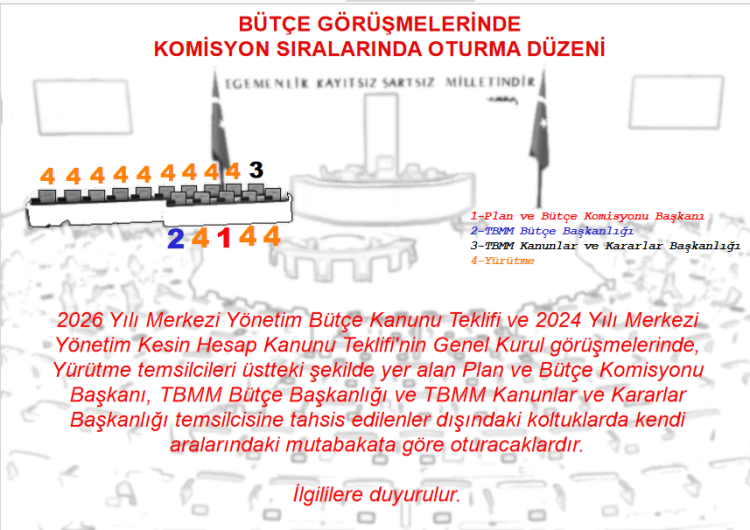 TBMM Genel Kurulu, 2026 Yılı Merkezi Yönetim Bütçe Kanunu Teklifi ile 2024 Yılı Kesin Hesap Kanunu Teklifi’nin görüşmelerine bugün (8 Aralık Pazartesi) başlıyor. Bütçe görüşmeleri 14 gün sürecek ve resmi tatiller dahil aralıksız devam edecek.
